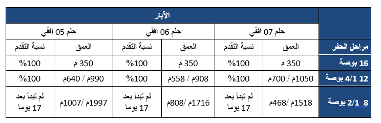 - حفر ثلاثة آبار أفقية (لم يتم إستكمال أشغال حفرها)